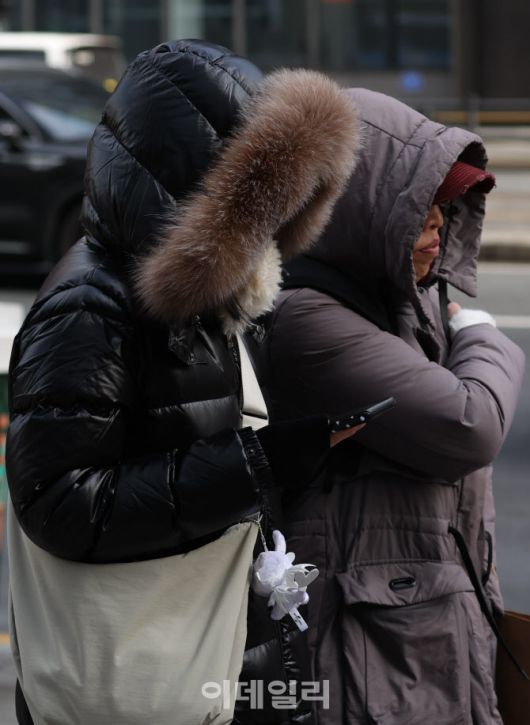 [이데일리 이영훈 기자] 찬바람이 강해지면서 내린 눈이 얼어붙을 것으로 예상되는 19일 오후 서울 강남역 일대에서 시민들이 움츠린채 이동하고 있다.