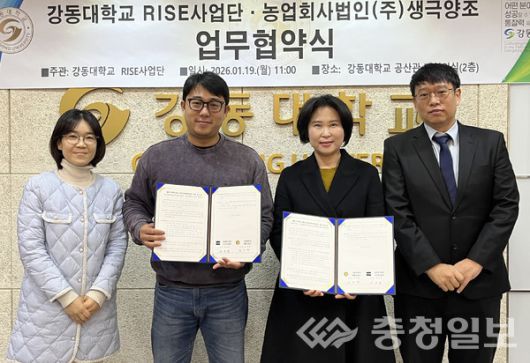 강동대학교(총장 서석해) RISE사업단(단장 김지혜)은 19일 강동대 공산관 대회의실에서 농업회사법인 ㈜생극양조(대표 허성준)과 '충북 지역혁신 중심대학지원체계(RISE)' 사업추진을 위한 업무협약(MOU)을 체결했다.
