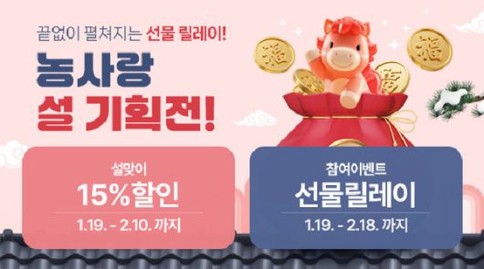 충남도 대표 농특산물 온라인 쇼핑몰 충남농사랑이 한 해의 시작을 알리는 설 명절을 맞아 도내 농특산물의 소비 촉진, 지역 농가의 소득 증대와 함께 도민의 합리적이고 건강한 소비를 위해 19일부터 2월 10일까지 설 명절 기획전을 진행한다.