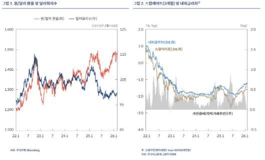 기업의 외화예금 축적과 외국인의 채권 투자 자금 유입으로 국내 자금시장에서의 달러 유동성은 풍부한 반면, 현물환시장에는 원화 약세 심리에 기반한 달러 매입 수요가 이어지며 유동성이 부족해졌기 때문이다. 이에 한국은행은 원화 약세 심리 완화를 위한 일관된 정책이 필요하다고 제언했다.