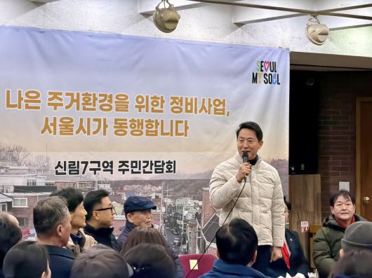 오 시장은 “신림7구역은 갑자기 (재개발이) 제동이 걸리면서 주민들이 열악한 주거 환경 속에서 고통을 많이 겪으셨다”며 “최근 들어 다시 한번 빠른 속도로 진도가 나가고 있다. 현재 동의율이 73%까지 올라왔고, 75%를 채우면 구역 지정에 이어 조합 설립이 가능해진다”고 말했다.