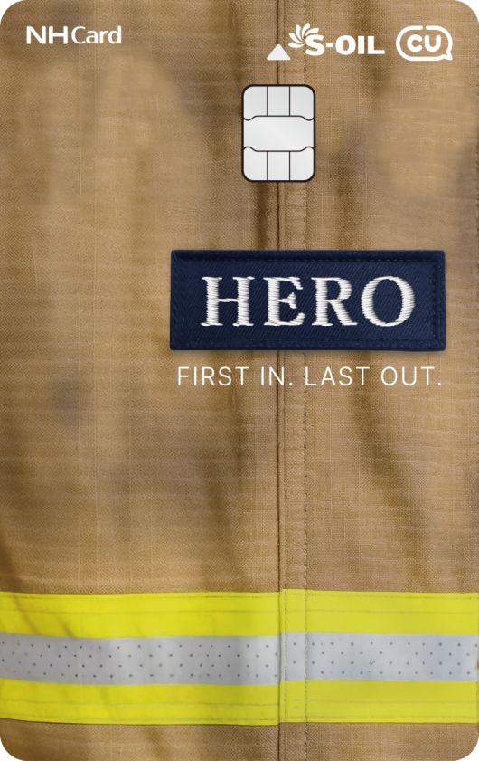 이 카드는 ‘FIRST IN, LAST OUT’을 몸소 실천하는 소방히어로 맞춤 디자인이 적용됐다. 소방관의 뒷모습과 그을린 소방복을 카드 플레이트 디자인에 활용해 소방공무원에 대한 존경과 예우의 마음을 담았다.