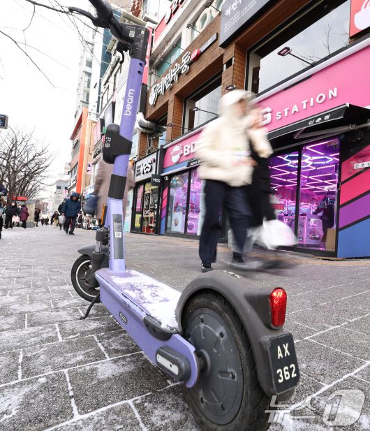 (서울=뉴스1) 구윤성 기자 = 19일 서울 서대문구 신촌거리 한복판에 전동킥보드가 세워져 있다. 서울시에 따르면 전동킥보드를 대여할 때 운전면허증 확인을 의무화하는 내용의 ‘개인형 이동장치 이용 안전 증진 조례 일부개정조례안’을 입법 예고하고 시민 의견 수렴 절차를 진행중이다. 2026.1.19/뉴스1