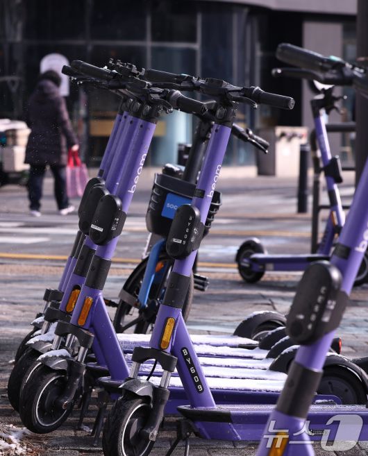 (서울=뉴스1) 구윤성 기자 = 19일 서울 서대문구 신촌역 인근에 전동킥보드가 세워져 있다. 서울시에 따르면 전동킥보드를 대여할 때 운전면허증 확인을 의무화하는 내용의 ‘개인형 이동장치 이용 안전 증진 조례 일부개정조례안’을 입법 예고하고 시민 의견 수렴 절차를 진행중이다. 2026.1.19/뉴스1