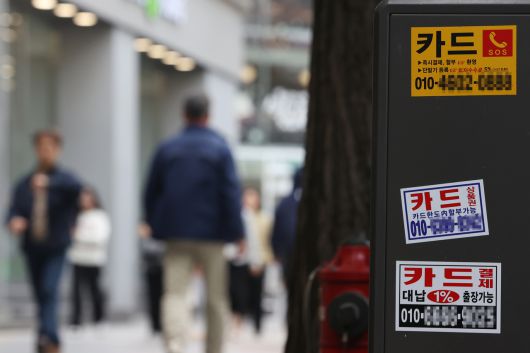 금융당국이 대부업체들이 은행권 차입 허용 등 인센티브를 바탕으로 새도약기금 협약에 가입할 수 있도록 독려하고 있다. 서울의 한 거리에 부착된 카드 대출 광고물. [연합] |