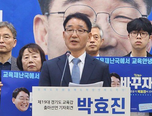 (수원=연합뉴스) 최종호 기자 = 경기도교육감 선거 출마를 선언한 박효진 전 전국교직원노동조합 경기지부장은 19일 "경기지역 학교 구성원의 직접 선출에 따른 학교대표 선임을 공약한다"고 밝혔다.