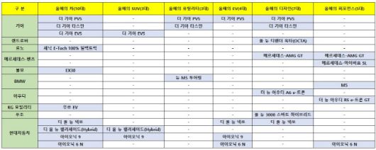 올해의 SUV 부문에는 △기아 EV5 △현대자동차 디 올 뉴 팰리세이드 △현대자동차 아이오닉 9 등 3대가 최종 심사행을 확정했다.