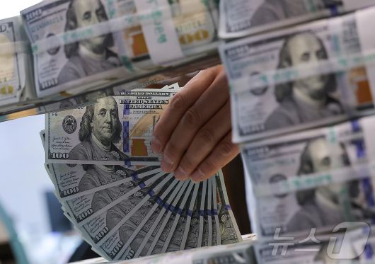 (서울=뉴스1) 김성진 기자 = 환리스크에 노출된 우리나라의 달러자산 규모가 외환시장 규모의 25배에 달한다는 국제통화기금(IMF)의 경고가 나왔다. 18일 IMF가 발간한 '글로벌 금융안정보고서(Global Financial Stability Report)'에 따르면, 우리나라의 환노출 달러자산 규모는 외환시장 거래량(월간 기준)의 약 25배에 달했다. 해당 지표는 각국 외환시장이 환율 변동 충격을 얼마나 흡수할 수 있는지를 가늠하는 척도로 활용된다. 사진은 19일 서울 중구 하나은행 위변조대응센터에서 직원이 달러화를 정리하는 모습. 2026.1.19/뉴스1
