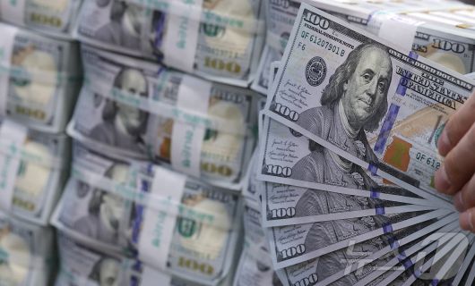 (서울=뉴스1) 김성진 기자 = 환리스크에 노출된 우리나라의 달러자산 규모가 외환시장 규모의 25배에 달한다는 국제통화기금(IMF)의 경고가 나왔다. 18일 IMF가 발간한 '글로벌 금융안정보고서(Global Financial Stability Report)'에 따르면, 우리나라의 환노출 달러자산 규모는 외환시장 거래량(월간 기준)의 약 25배에 달했다. 해당 지표는 각국 외환시장이 환율 변동 충격을 얼마나 흡수할 수 있는지를 가늠하는 척도로 활용된다. 사진은 19일 서울 중구 하나은행 위변조대응센터에서 직원이 달러화를 정리하는 모습. 2026.1.19/뉴스1