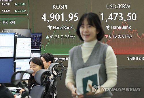 (서울=연합뉴스) 이민영 기자 = 코스피가 19일 장중 상승폭을 키워 사상 처음 4,900선을 돌파했다.