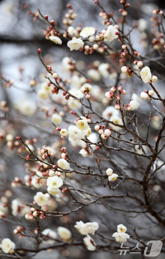 (부산=뉴스1) 윤일지 기자 = '1년 중 가장 춥다'는 절기상 대한(大寒)을 하루 앞둔 19일 부산 남구 동명대학교에서 봄의 전령사 매화가 꽃망울을 터뜨려 눈길을 끌고 있다. 2026.1.19/뉴스1