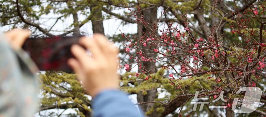 (부산=뉴스1) 윤일지 기자 = '1년 중 가장 춥다'는 절기상 대한(大寒)을 하루 앞둔 19일 부산 남구 유엔기념공원에서 봄의 전령사 홍매화가 꽃망울을 터뜨려 눈길을 끌고 있다. 2026.1.19/뉴스1