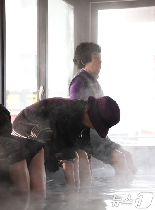 (시흥=뉴스1) 김영운 기자 = 절기상 대한(大寒)을 하루 앞둔 19일 경기 시흥시 신천동 소래어린이공원 족욕장에서 시민들이 추위를 피해 족욕을 즐기고 있다. 기상청은 19일 밤부터 북쪽에서 내려오는 찬 공기의 영향으로 기온이 급격히 떨어지면서 전국 대부분 지역의 20일 아침 최저 기온은 -17~-3도로 전망했다. 2026.1.19/뉴스1