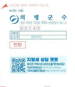 (의령=국제뉴스) 황재윤 기자 = 의령군은 19일, 지방세 고지서 전면에 '지방세 챗봇 상담서비스' QR코드를 삽입해 발송한다고 밝혔다.