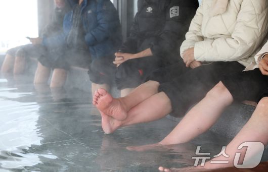 (시흥=뉴스1) 김영운 기자 = 절기상 대한(大寒)을 하루 앞둔 19일 경기 시흥시 신천동 소래어린이공원 족욕장에서 시민들이 추위를 피해 족욕을 즐기고 있다. 기상청은 19일 밤부터 북쪽에서 내려오는 찬 공기의 영향으로 기온이 급격히 떨어지면서 전국 대부분 지역의 20일 아침 최저 기온은 -17~-3도로 전망했다. 2026.1.19/뉴스1
