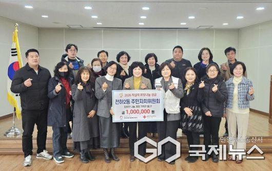 (울산=국제뉴스) 주영곤 기자 = 울산 동구 전하2동 주민자치위원회(위원장 김영회)는 19일 전하2동 행정복지센터에서 2026년 적십자 특별회비 100만 원을 대한적십자사 울산광역지사에 전달했다.