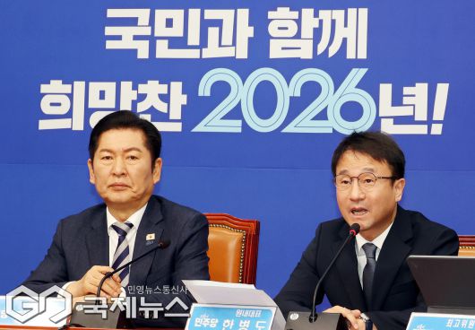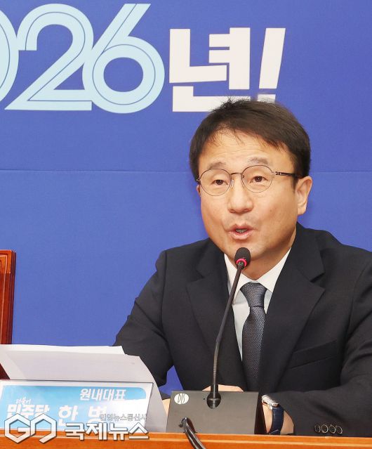(서울=국제뉴스) 한병도 더불어민주당 원내대표가 19일 오전 서울 여의도 국회에서 열린 최고위원회의에서 발언을 하고 있다./사진=이용우 기자