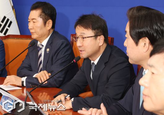 (서울=국제뉴스) 한병도 더불어민주당 원내대표가 19일 오전 서울 여의도 국회에서 열린 최고위원회의에서 발언을 하고 있다./사진=이용우 기자