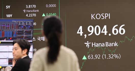 새해 들어 하루도 빠짐없이 상승한 코스피 상승률은 연초 이후 16%를 넘어섰다. 코스피 종가 기준 4800선을 넘어선 지 1거래일, 4700선 고지를 밟은 지 3거래일 만에 4900선도 돌파했다.