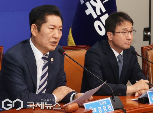 (서울=국제뉴스) 정청래 더불어민주당 대표가 19일 오전 서울 여의도 국회에서 열린 최고위원회의에서 발언을 하고 있다./사진=이용우 기자