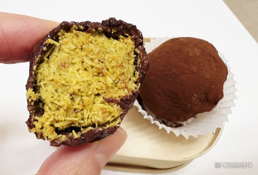 두바이 초콜릿과 가장 큰 차이점은 식감이다. 두쫀쿠는 쿠키라는 이름과 달리 떡처럼 쫄깃하다. 중동식 면인 카다이프를 버터에 볶은 후, 피스타치오 크림을 섞는다. 이를 동그랗게 뭉쳐 코코아 가루와 함께 녹인 마시멜로로 얇게 감싼다.