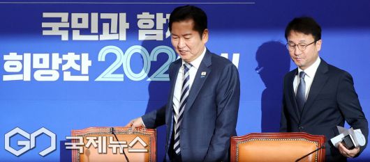 (서울=국제뉴스) 정청래 더불어민주당 대표와 한병도 원내대표가 19일 오전 서울 여의도 국회에서 열린 최고위원회의에 참석하고 있다./사진=이용우 기자