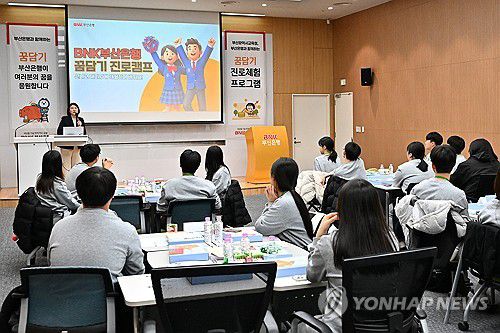 (부산=연합뉴스) BNK부산은행은 19일부터 21일까지 은행 본점에서 '꿈담기(꿈을 담아내는 기업)' 진로체험 프로그램을 진행한다고 밝혔다. 부산시교육청이 선발한 금융권 진로희망 고등학생 23명을 대상으로 직접 만드는 나만의 금융상품, 모의투자 대회, 은행원 체험하기 등 다양한 프로그램을 제공한다. 2026.1.19 [부산은행 제공. 재판매 및 DB 금지]