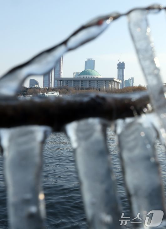 (서울=뉴스1) 김명섭 기자 = 영하권의 낮 기온을 보인 19일 서울시 영등포구 한강변에 고드름이 열려 있다. 한편 기상청은 대한인 20일 서울 기온이 영하 13도까지 곤두박질해 올겨울 들어 가장 낮은 기온을 보이는 등 이번 주 내내 긴 한파가 이어질 것으로 예보했다. 2026.1.19/뉴스1