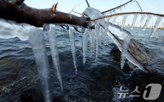(서울=뉴스1) 김명섭 기자 = 영하권의 낮 기온을 보인 19일 서울시 영등포구 한강변에 고드름이 열려 있다 한편 기상청은 대한인 20일 서울 기온이 영하 13도까지 곤두박질해 올겨울 들어 가장 낮은 기온을 보이는 등 이번 주 내내 긴 한파가 이어질 것으로 예보했다. 2026.1.19/뉴스1