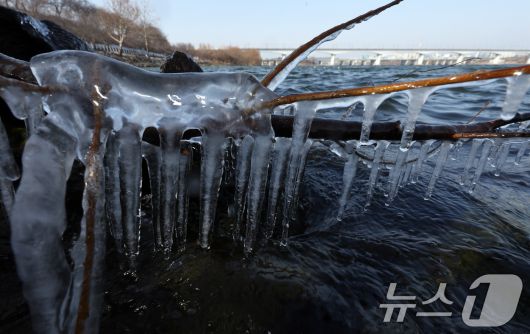 서울 기온 곤두박질 한강변 고드름 얼어붙다