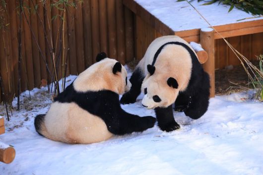 눈 덮인 '판다 세컨하우스'에서 즐거운 시간을 보내는 루이바오(오른쪽)와 후이바오(좌).jpg (1.4MB) |
