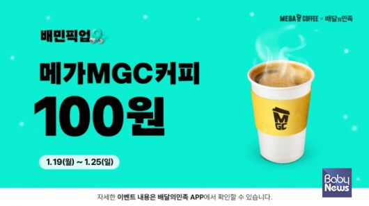 대한민국 대표 커피 브랜드 메가MGC커피가 배달의민족(이하 배민)과 협업을 통해 파격적인 할인 혜택을 제공한다고 19일 전했다.