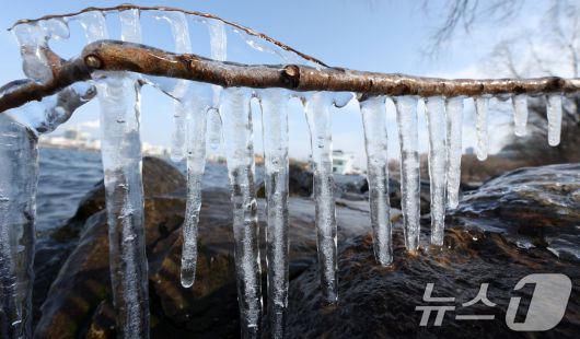 영하권의 낮 기온을 보인 19일 서울시 영등포구 한강변에 고드름이 열려 있다. 한편 기상청은 대한인 20일 서울 기온이 영하 13도까지 곤두박질해 올겨울 들어 가장 낮은 기온을 보이는 등 이번 주 내내 긴 한파가 이어질 것으로 예보했다. 2026.1.19/뉴스1 ⓒ News1 김명섭 기자 |