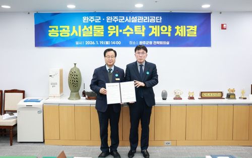 (완주=연합뉴스) 최영수 기자 = 전북 완주군 시설관리공단은 19일 군으로부터 4개 체육시설을 추가 위탁받아 운영하기로 협약했다고 밝혔다.
