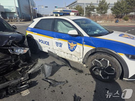 (인천=뉴스1) 이시명 기자 = 19일 오후 1시 35분쯤 인천 서구 오류동 한 교차로에서 50대 경찰관 A 씨가 운전하던 순찰차가 다른 방향에서 직진하던 SUV 차량과 충돌했다.