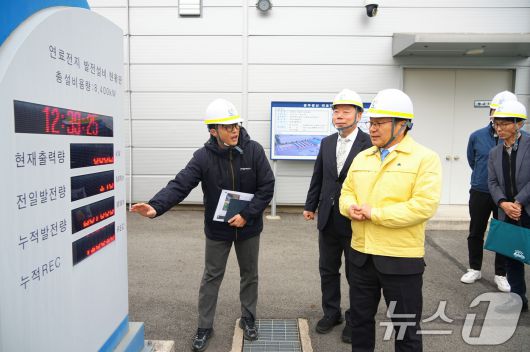 (광주=뉴스1) 이수민 기자 = 강기정 광주광역시장이 19일 ㈜해양에너지를 방문해 '광주광산 연료전지 발전설비'를 살펴보고 있다. (광주광역시 제공. 재판매 및 DB 금지) 2026.1.19/뉴스1breath@news1.krCopyright ⓒ 뉴스1. All rights reserved. 무단 전재 및 재배포, AI학습 이용 금지.