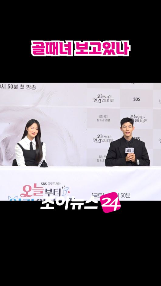 배우 김혜윤, 로몬이 지난 16일 오후 서울 목동 SBS에서 열린 SBS 새 금토드라마 '오늘부터 인간입니다만' 제작발표회에 참석해 소감을 말하고 있다. [영상=문수지 기자]