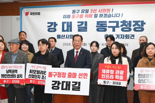 [울산=뉴시스] 국민의힘 강대길 울산시의원이 19일 시의회 프레스센터에서 기자회견을 열고 동구청장 출마를 선언하고 있다. 2026.01.19. (사진=시의회 제공) photo@newsis.com *재판매 및 DB 금지 |