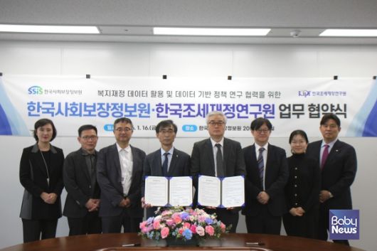 한국사회보장정보원(원장 김현준)과 한국조세재정연구원(원장 이영)은 지난 1월 16일, 복지재정 데이터의 효율적 활용과 데이터 기반의 정책 연구 협력을 위한 업무협약(MOU)을 체결했다고 19일 밝혔다.