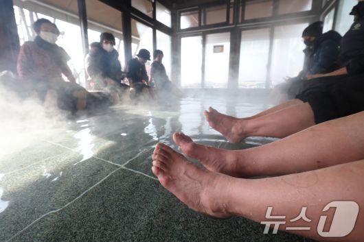 (시흥=뉴스1) 김영운 기자 = 절기상 대한(大寒)을 하루 앞둔 19일 경기 시흥시 신천동 소래어린이공원 족욕장에서 시민들이 추위를 피해 족욕을 즐기고 있다. 기상청은 19일 밤부터 북쪽에서 내려오는 찬 공기의 영향으로 기온이 급격히 떨어지면서 전국 대부분 지역의 20일 아침 최저 기온은 -17~-3도로 전망했다. 2026.1.19/뉴스1