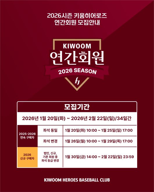 프로야구 키움이 2026시즌 연간회원을 모집한다.