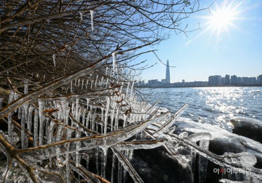 서울시가 20일부터 주중 내내 영화10도 이하의 한파가 예보되자 취약계층 보호와 상황관리 강화에 나선다. 사진은 전국 곳곳에 한파특보가 내려진 지난 11일 광진구 뚝섬한강공원 인근 한강이 얼어 있는 모습/정재훈 기자 |