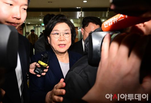 아시아투데이 이병화 기자 = 이혜훈 기획예산처 장관 후보자가 19일 국회에서 취재진의 질문을 받으며 이동하고 있다. 이날 열린 재정경제기획위원회 전체회의는 이 장관의 청문회 개최 여부를 놓고 여야간 공방이 이어지다 정회됐다.