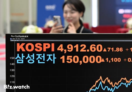 코스피가 19일 사상 처음으로 4900선을 돌파하며 역대 최고를 경신하고 있다. 사진은 한국거래소 증시 상황판 모습./사진=이명근 기자 qwe123@ |