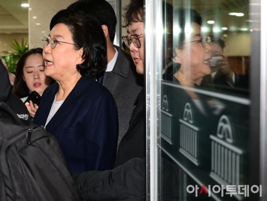 아시아투데이 이병화 기자 = 이혜훈 기획예산처 장관 후보자가 19일 국회에서 열린 인사청문회 출석 대기를 위해 대기실로 향하고 있다. 이날 열린 재정경제기획위원회 전체회의는 이 장관의 청문회 개최 여부를 놓고 여야간 공방이 이어지다 정회됐다.
