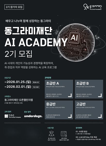 자세한 사항은 동그라미재단 AI 아카데미 2기 공식 모집 홈페이지에서 확인할 수 있다.