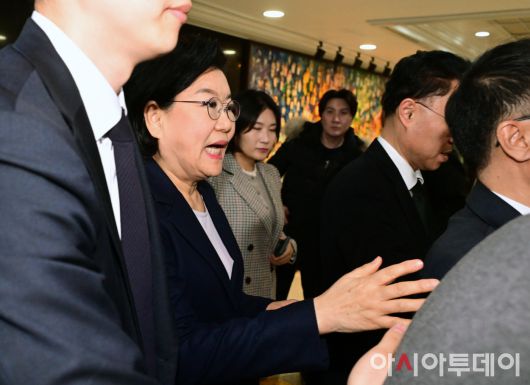 아시아투데이 이병화 기자 = 이혜훈 기획예산처 장관 후보자가 19일 국회에서 취재진의 질문을 받으며 이동하고 있다. 이날 열린 재정경제기획위원회 전체회의는 이 장관의 청문회 개최 여부를 놓고 여야간 공방이 이어지다 정회됐다. ⓒ "젊은 파워, 모바일 넘버원 아시아투데이"