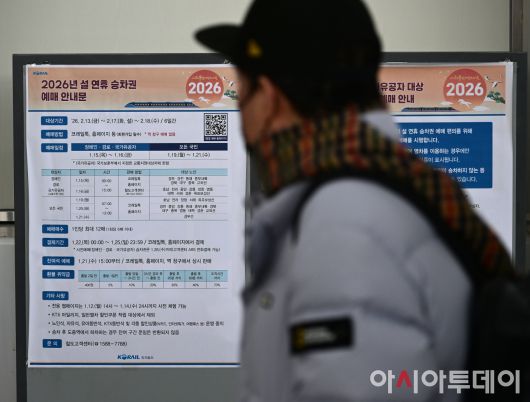 아시아투데이 이병화 기자 = 전국민 대상 설 연휴 열차 승차권 일반 예매가 시작된 19일 서울 중구 서울역 승차권 판매창구 앞에 관련 안내문이 게시되어 있다. 설 연휴 승차권 일반 예매는 오늘부터 21일까지 사흘간 오전 7시부터 오후 1시까지 코레일톡과 공식 홈페이지를 통해 예매할 수 있다. ⓒ "젊은 파워, 모바일 넘버원 아시아투데이"