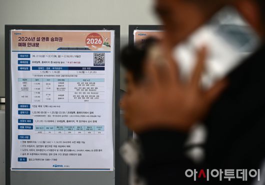 아시아투데이 이병화 기자 = 전국민 대상 설 연휴 열차 승차권 일반 예매가 시작된 19일 서울 중구 서울역 승차권 판매창구 앞에 관련 안내문이 게시되어 있다. 설 연휴 승차권 일반 예매는 오늘부터 21일까지 사흘간 오전 7시부터 오후 1시까지 코레일톡과 공식 홈페이지를 통해 예매할 수 있다.