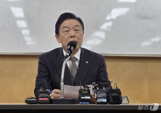 (천안=뉴스1) 이시우 = 김형석 독립기념관 관장이 19일 충남 천안 독립기념관 이사회를 마치고 기자회견을 하고 있다. 독립기념관 이사회는 이날 오후 독립기념관 밝은누리관에서 열린 긴급 이사회에서 김형석 관장에 대한 해임 건의안을 의결했다. 2026.1.19/뉴스1